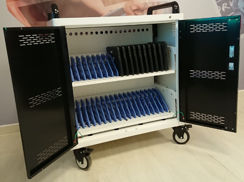 Os carrinhos de recarga garantem que todos os dispositivos estejam sempre prontos para uso, eliminando barreiras logísticas e permitindo que os professores se concentrem no que realmente importa: ensinar. Essa solução prática e eficiente assegura que a tecnologia esteja sempre ao alcance, facilitando a integração dos tablets no dia a dia escolar.